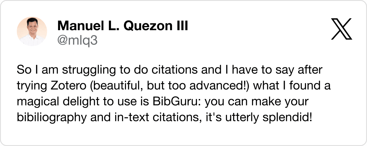 You can export the citations and bibliographies you created in BibGuru to a Word file, copy and paste them to Google Docs, or export them as bibliographic data files (BibTeX or RIS) to use with other reference manager apps.